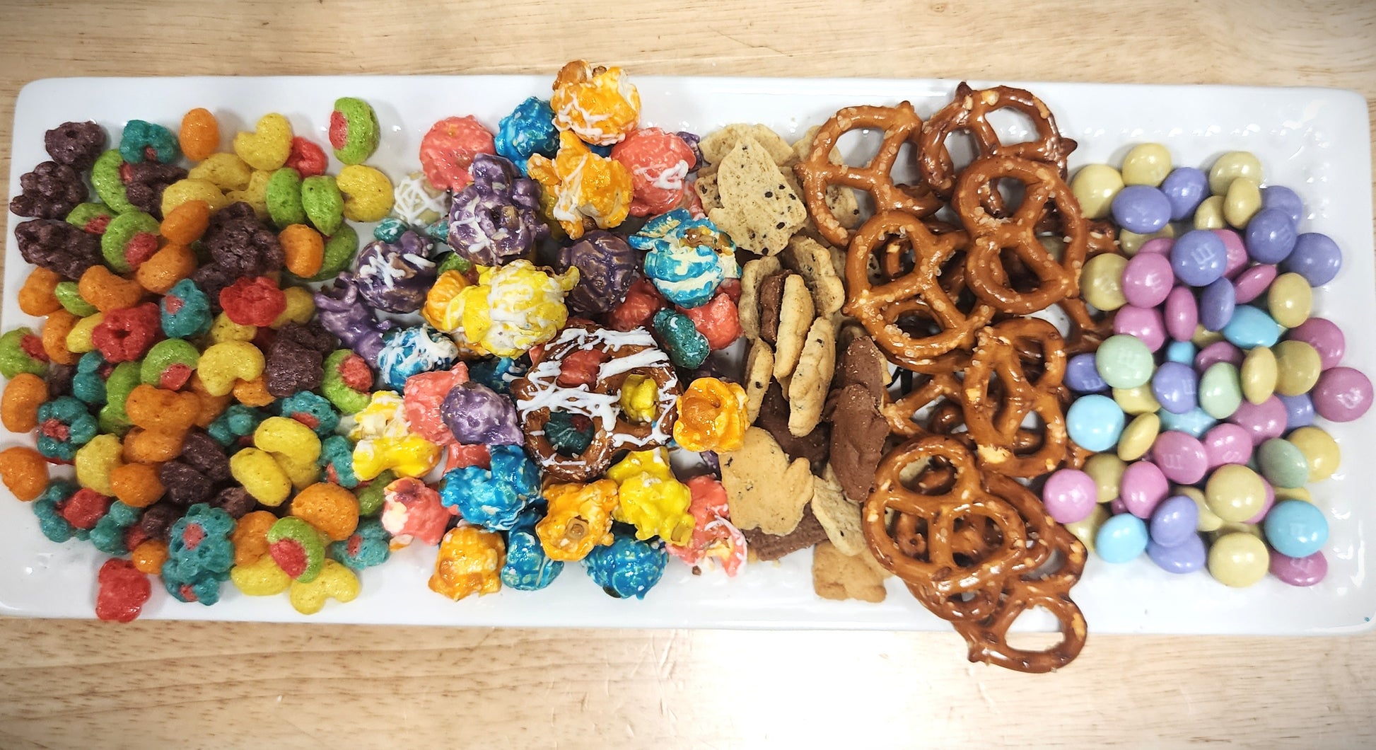 Hop into spring with our playful Spring Trail Mix – Bunny Bait! This delightful treat features delicious vanilla popcorn coated in creamy white chocolate, mixed with heaps of colorful Peeps cereal, crunchy pretzels, adorable bunny-shaped cookies, and pastel M&Ms. It’s a fun and festive snack that’s perfect for sharing at Easter gatherings or enjoying anytime you want a sweet, salty, and crunchy celebration in every bite. Get ready to nibble, crunch, and smile with this irresistible springtime mix!