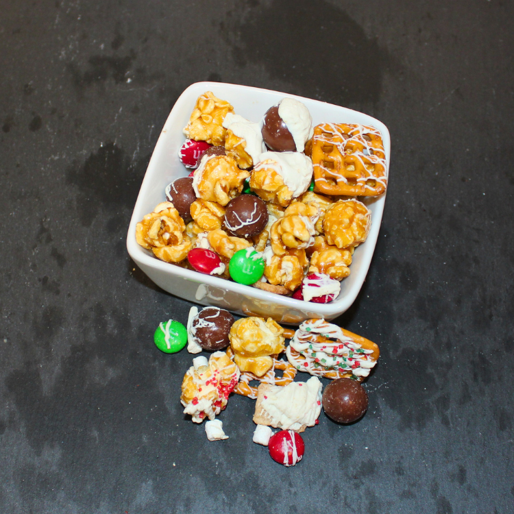 Meet Rudolph's Trail Mix—the snack that proves the big guy in red isn't the only one who knows how to celebrate! This jolly blend pairs caramel popcorn with colorful M&Ms, crunchy pretzels, malted Whoppers, fluffy mini marshmallows, and crispy graham cereal, all crowned with a generous drizzle of creamy milk chocolate. It's the kind of mix that makes you smile with every bite—sweet, salty, crunchy, and chewy all at once. Perfect for movie nights, holiday parties, or sneaking a handful while decorating the tree, this festive favorite brings the fun of the season to your snack bowl. Whether you're fueling up for caroling, packing stockings, or simply indulging in some seasonal cheer, Rudolph's Trail Mix delivers the playful spirit of Christmas in every delicious spoonful. Share it, savor it, or keep it all to yourself—we won't tell!